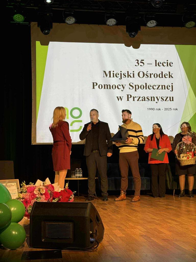 Tego dnia Prezes MKS Przasnysz - Paweł Woliński oraz Kapitan pierwszej drużyny - Damian Grędziński złożyli serdeczne życzenia i podziękowania Pani Dyrektor - Magdalenie Król za pełną empatii pracę na rzecz osób potrzebującym