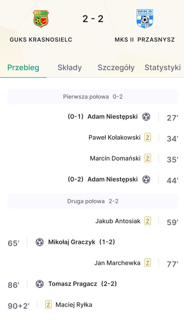 Mecz z dwoma różnymi połowami. W pierwszej części połowy po bardzo dobrej grze i kontrolą przebiegu spotkania wygrywaliśmy 2:0.